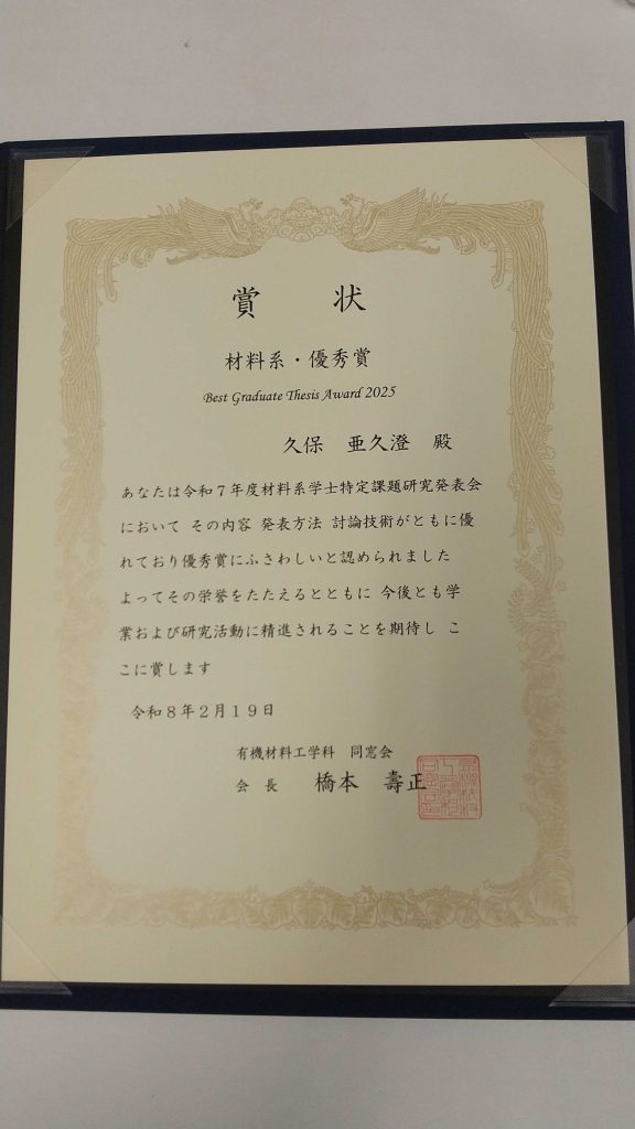 Febuary 2026: Agusu Kubo received The Best Graduate Thesis Award 2025.